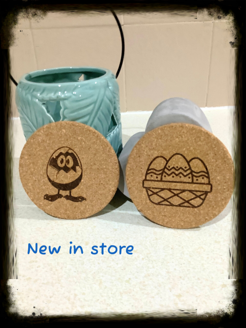 Laser design Easter coasters we have two options of laser designed coasters both are made to order We have the fun and the cute Easter themes so there are options for you can decide on how many you would like of each design. All our work is handcrafted.
